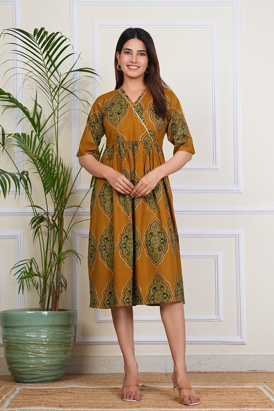 Women's Cotton Shirt Collar Neck Ragular Printed Kurta for Woman